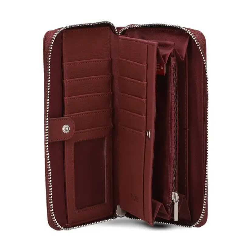 Elegantní peněženka Zwei má zapínání na zip, který se rozepíná do tří stran. Uvnitř peněženky je 6 záložek na kreditní karty a dvě přihrádky na bankovky oddělené přepážkou, ve které je zipová kapsa na mince. Uvnitř kapsičky je malá záložka, kam lze vložit žeton na nákupní vozík. Uvnitř peněženky je další samostatný oddíl se zapínáním na druk. Zde je dalších 10 záložek na karty (jedna je průhledná) a další přihrádka na doklady nebo papíry. Podšívka v kapsičkách je ve stejné barvě, jako je vnější podklad pod logem ZWEI. Peněženka je balená v bílé papírové krabičce.