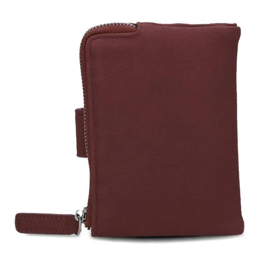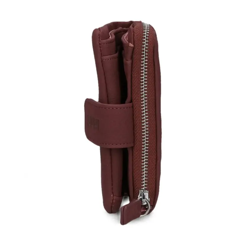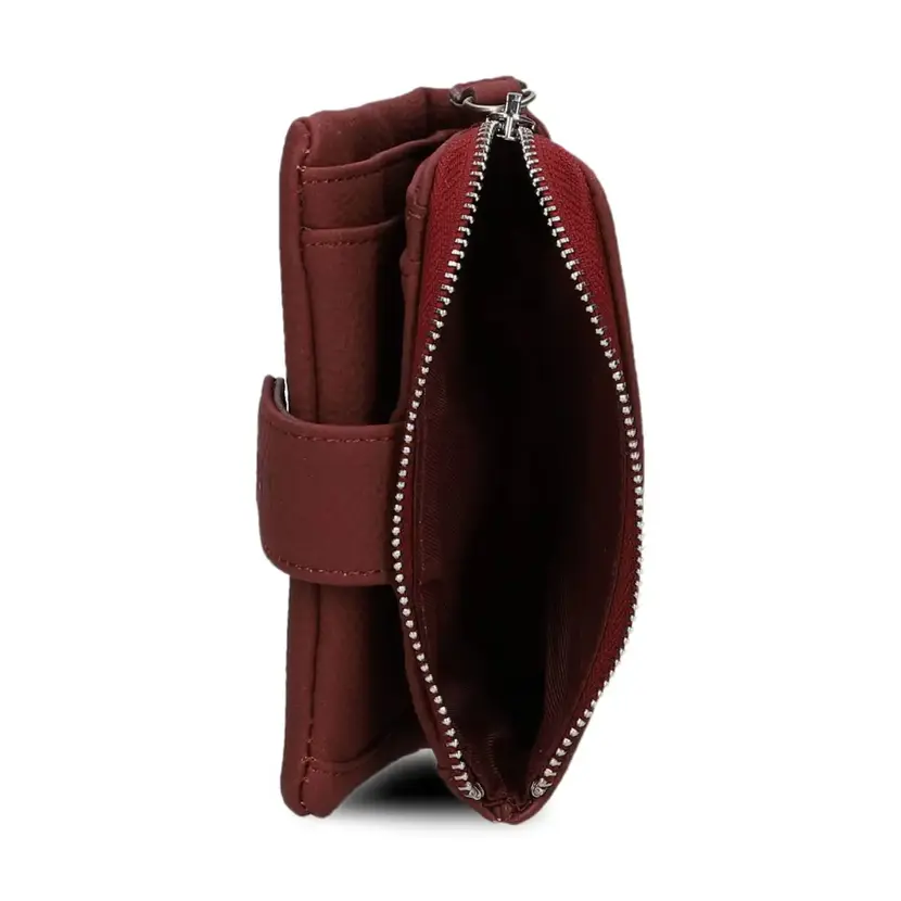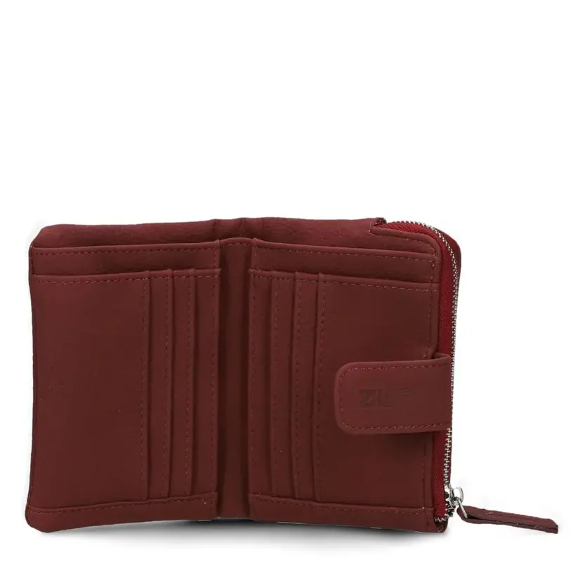 Elegantní středně velká peněženka má zapínání na druk. Uvnitř peněženky je přihrádka na bankovky, 4 záložky na doklady a 6 záložek na kreditní karty. Z vnější strany je kapsička na mince se zapínáním na zip. Peněženka je balená v bílé papírové krabičce.