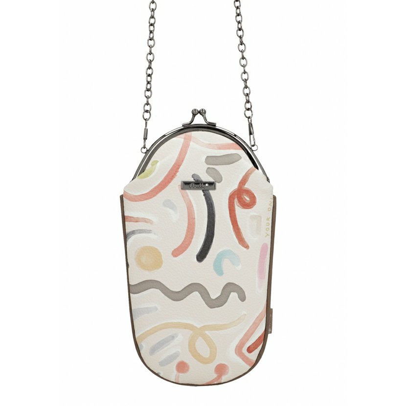 Pouzdro na brýle má kovový rámeček se zapínáním "kiss-lock" a odnímatelný řetízek přes rameno.